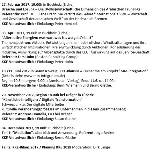 Die jährliche Planung führen wir im Bilanz- und Planungstreffen im Dezember für das jeweils nächste Jahr gemeinsam durch; die KKE'ler bringen Themenvorschläge ein, über die dann abgestimmt wird.
